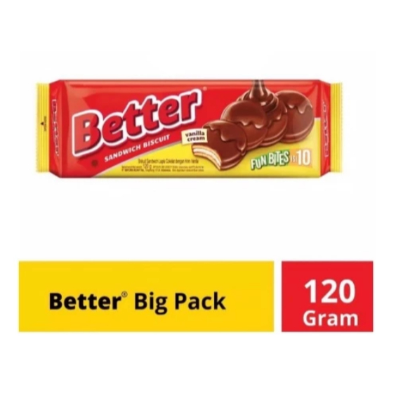 Better Vanilla merupakan biskuit dengan vanila krim. Sandwich biskuit dengan krim vanilla lembut yang dilapisi dengan cokelat tebal yang lezat. Memberi Anda rasa yang sempurna untuk setiap momen.