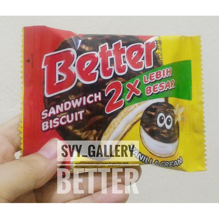 biskuit sandwich lapis coklat dengan isi krim vanila