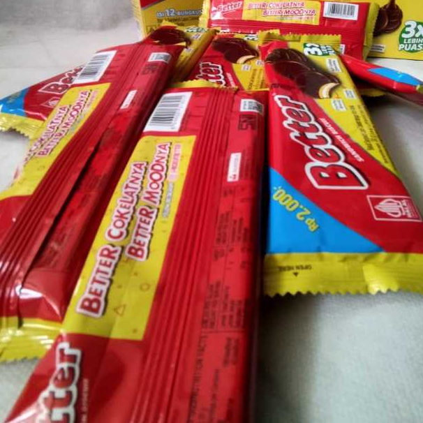nikmati lezatnya biskuit sandwich renyah better dengan balutan cokelat yang tebal dan sensasi krim vanilla yang lembut.
