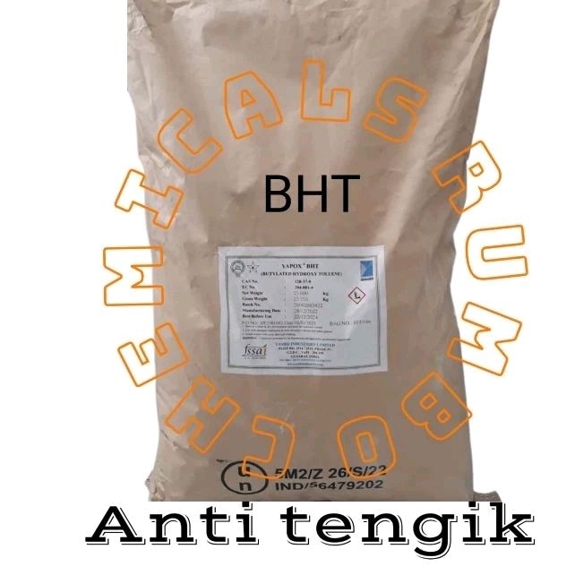 BHT (Butylated Hydroxytoluene) adalah zat aditif yang berfungsi sebagai antioksidan dan penstabil. BHT digunakan dalam berbagai produk, seperti makanan, kosmetik, dan farmasi.