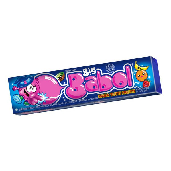 Big Babol Stick Tutti Fruity. Permen karet dengan rasa Tutti Fruity yang seru dimakan bareng teman-teman dan sangat praktis di bawa kemana saja