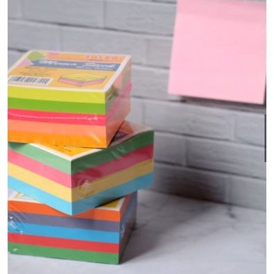 Sebuah lebaran2 kertas berukuran 76 x 76 mm, dimana sisi ujung atas terdapat perekat. Berfungsi sebagai memo utk menulis pesan atau catatan kecil dan dapat di tempel tanpa meninggalkan bekas.