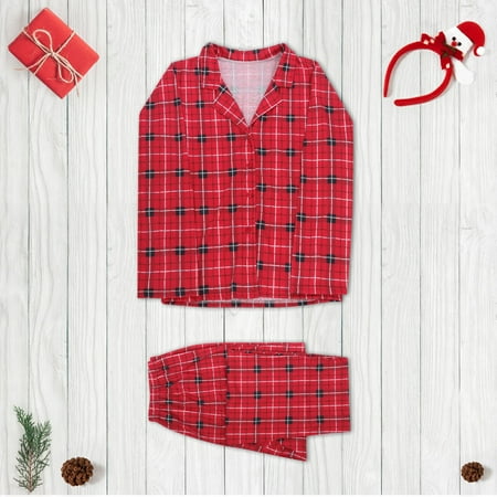 ERTUTUYI Family Christmas Pajamas Soft Plaid Print Christmas Pajamas For Mom Red M