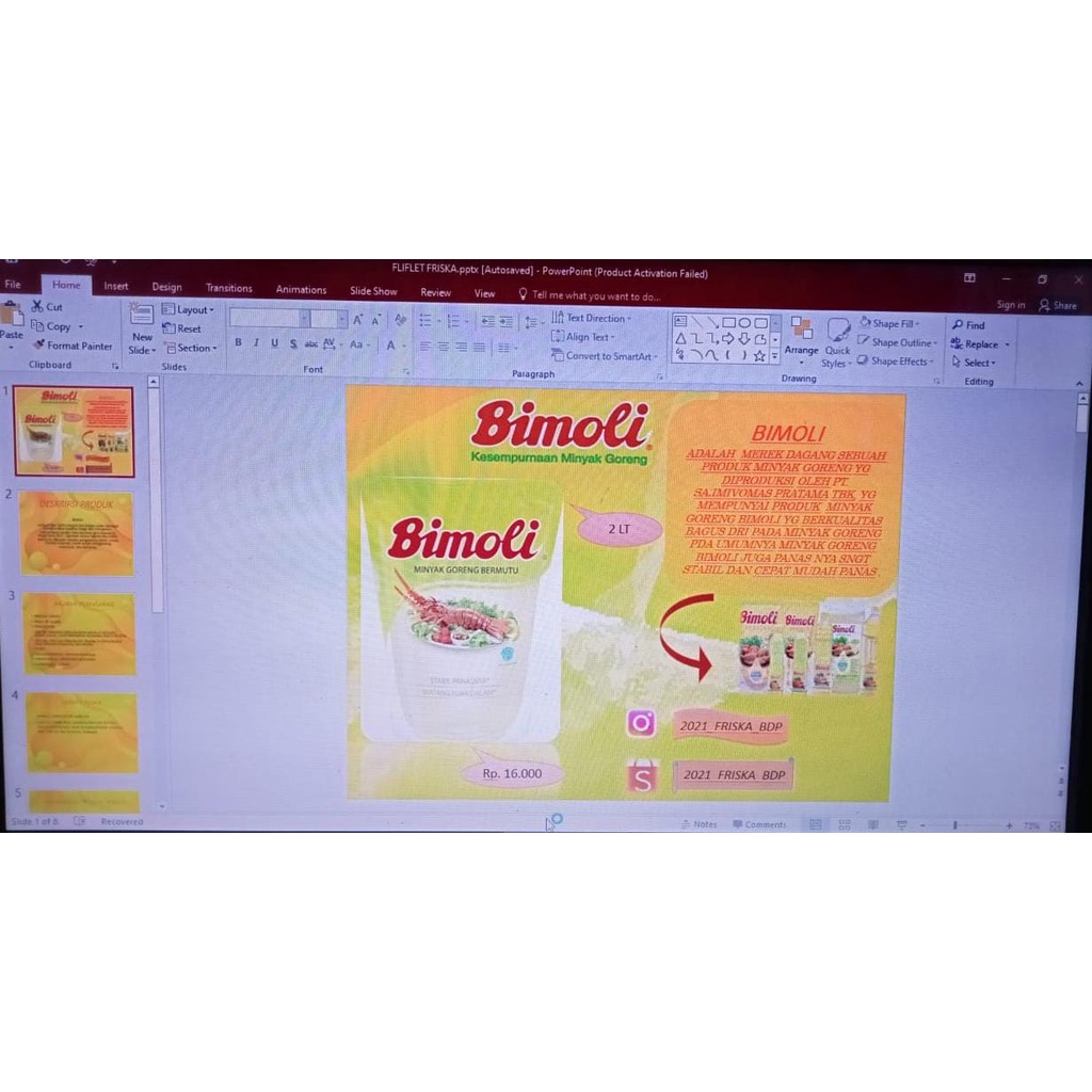 BIMOLI ADALAH MINYAK GORENG DARI KELAPA SAWIT 100% SEHINGGA MENGHASILKAN KULIATAS TINGGI DAN MENGNDUNG SUMBER BETA KAROTEN ( PRO VITAMIN A ) TINGGI SERTA VITAMIN E.