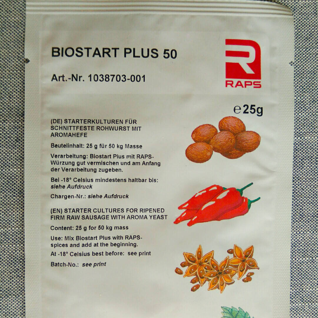 BIOSTART PLUS 50 - Биостарт Плюс 50 - это стартовые культуры немецкого производителя RAPS, которые используются для ускоренного процесса созревания сыровяленых колбас.
