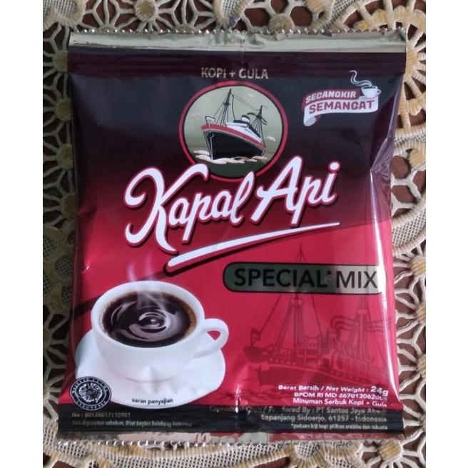 Kapal Api Special Mix 24gr x 10pcs merupakan kopi bubuk yang terbuat dari biji kopi pilihan. Kapal api menghasilkan kopi yang harum dan lebih enak. Tuangkan satu sendok makan ke dalam cangkir, tambahkan gula secukupnya, kemudian seduh dengan air mendidih 200 ml dan kopi ini siap disajikan.