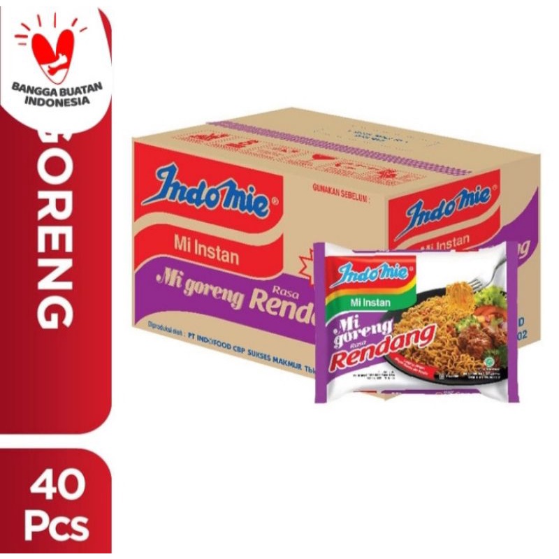 (BISA COD) PAKET 1 DUS INDOMIE GORENG RASA RENDANG /1 DUS ISI 40 PCS/ 91GRAM