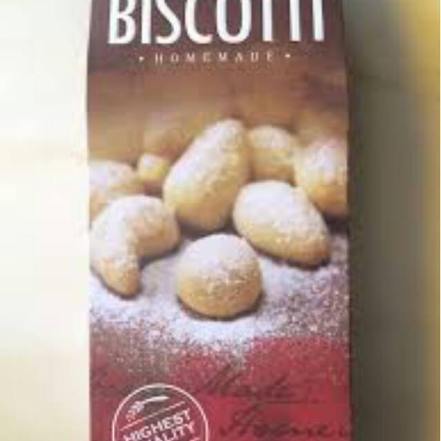 Biscotti: Sugar Sprinkle Premium Butter Cookies, merupakan cookies yang diadaptasi dari Italy yang berisikan adonan butter dengan crunchy cashews (kacang mede) yang diselimuti dengan sprinkle sugar atau biasa disebut gula halus.