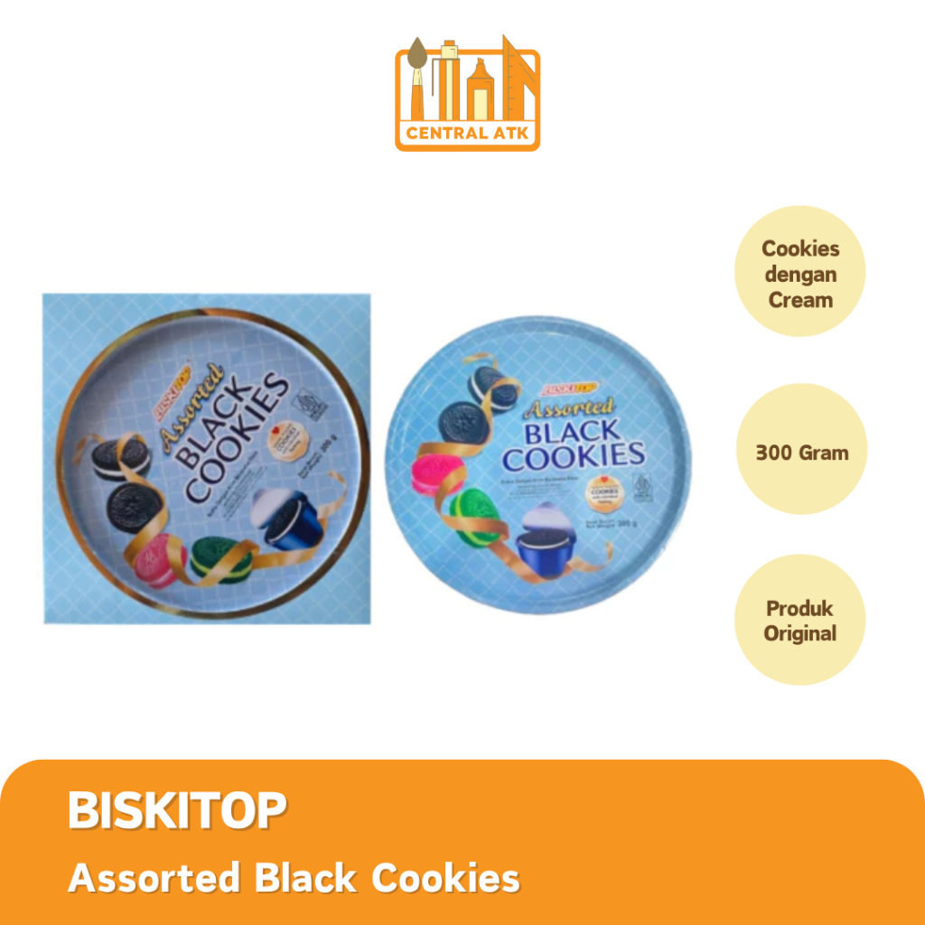 • MODEL = BISKITOP BLACK COOKIES ASSORTED KALENG BULAT 300GR