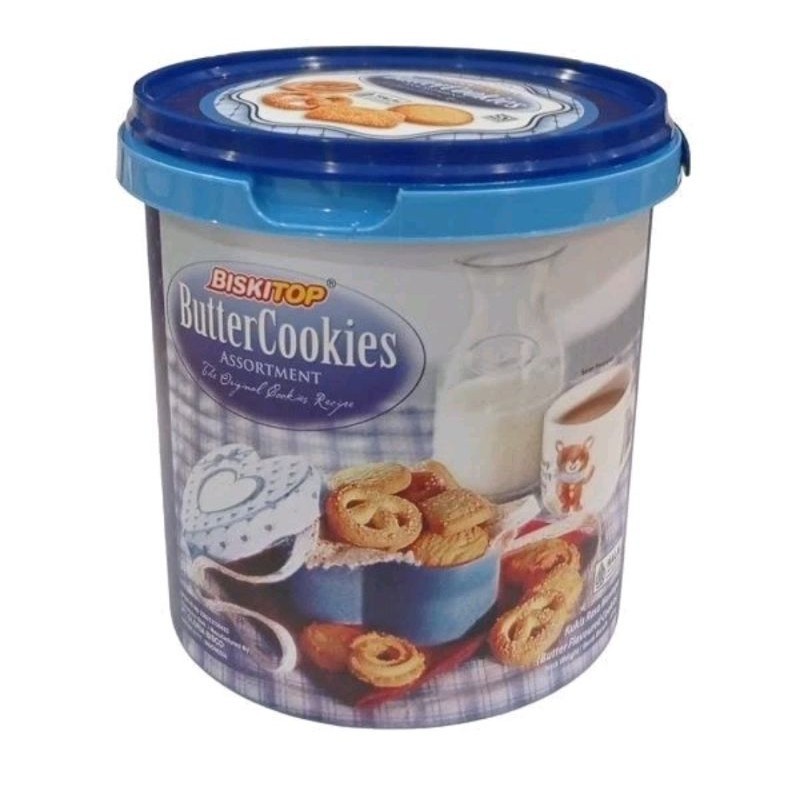 Produk buttercookies biskitop diproduksi pabrik dan terjamin kualitasnya menjadikan biskuit butter/biskitop buttercookies dengan kemasan ember berukuran 370gr dengan rasa mentega yang nikmat.