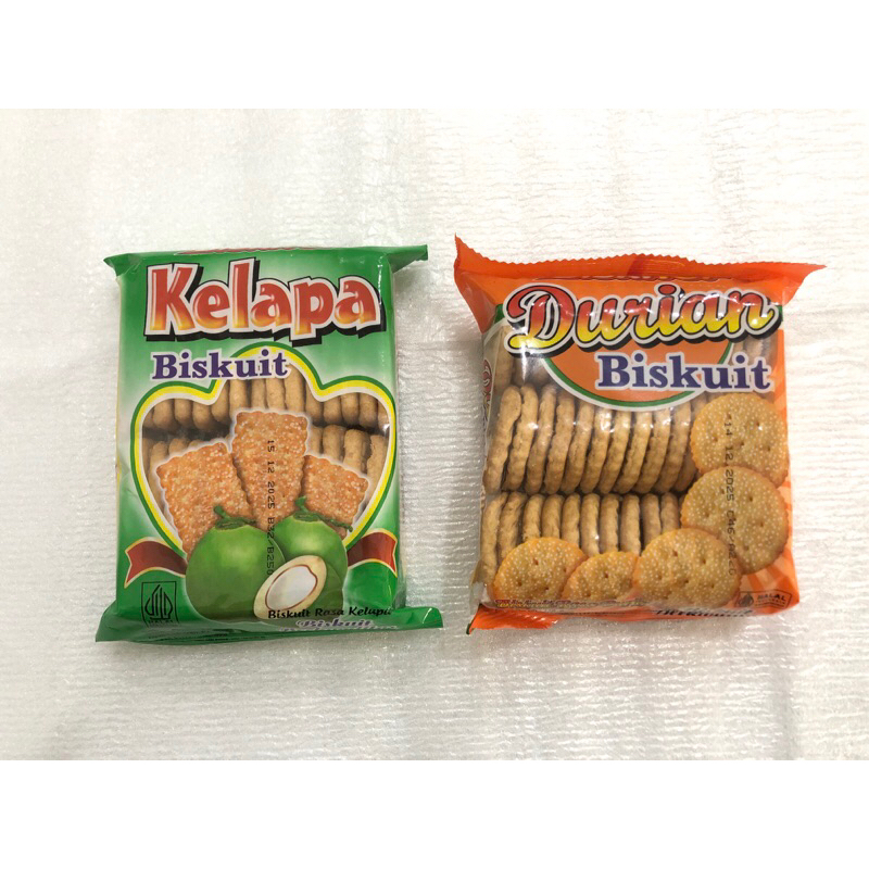 Biskuit rasa kelapa dan durian dengan rasanya yang super enak, manis, dan renyah. Banyak disukai anak-anak hingga orang dewasa. Cocok dinikmati saat bersantai.