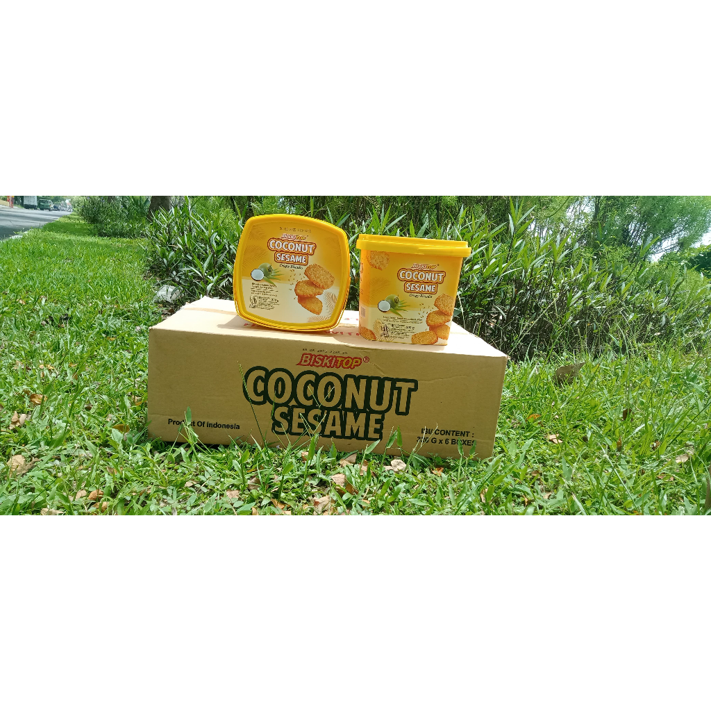 BISKITOP COCONUT SESAME CRISPY BISCUITS BOX PLASTIK TIMBA