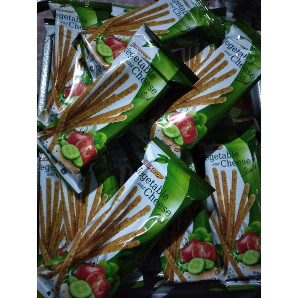 BISKUIT KERING DENGAN BENTUK STIK RASA KEJU DAN SAYUR. SANGAT COCOK DINIKMATI DENGAN KELUARGA SAAT SANTAI BERSAMA. HARGA YANG TERTERA ADALAH 3PCS. HAPPY SHOPPING KAK.