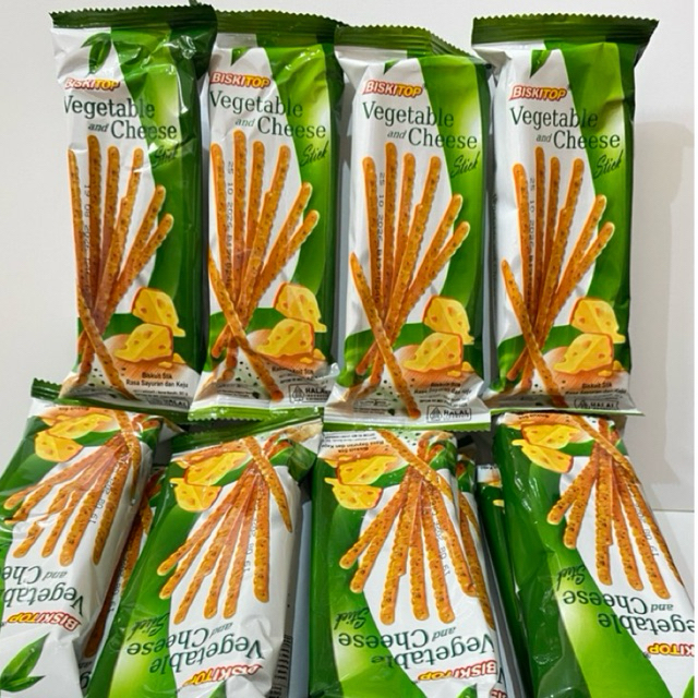 Biskuit stik gurih dengan rasa sayur dan keju. Biskuit yang cocok untuk cemilan dan snack, maupun keperluan acara dengan harga murah dan enak.