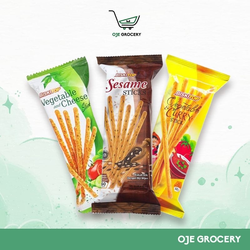BISKITOP - VEGETABLE & CHEESE - VEGETABLE & CURRY - SESAME STICK