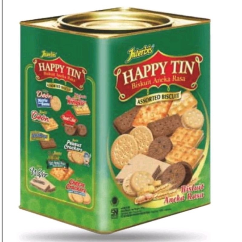 BISKUIT KALENG INTERBIS HAPPY TIN / ROTI KALENG lebaran UK.630 GRAM