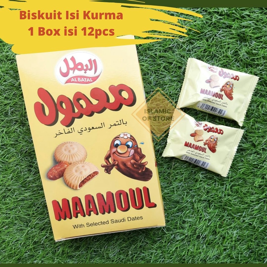 Biskuit Maamoul AL BATAL adalah jenis biskuit pie dengan isi selai kurma. Kurma pilihan yang mengandung antioksidan yang tinggi. Dapat dijadikan camilan sehat sehari hari atau hadiah / bingkisan