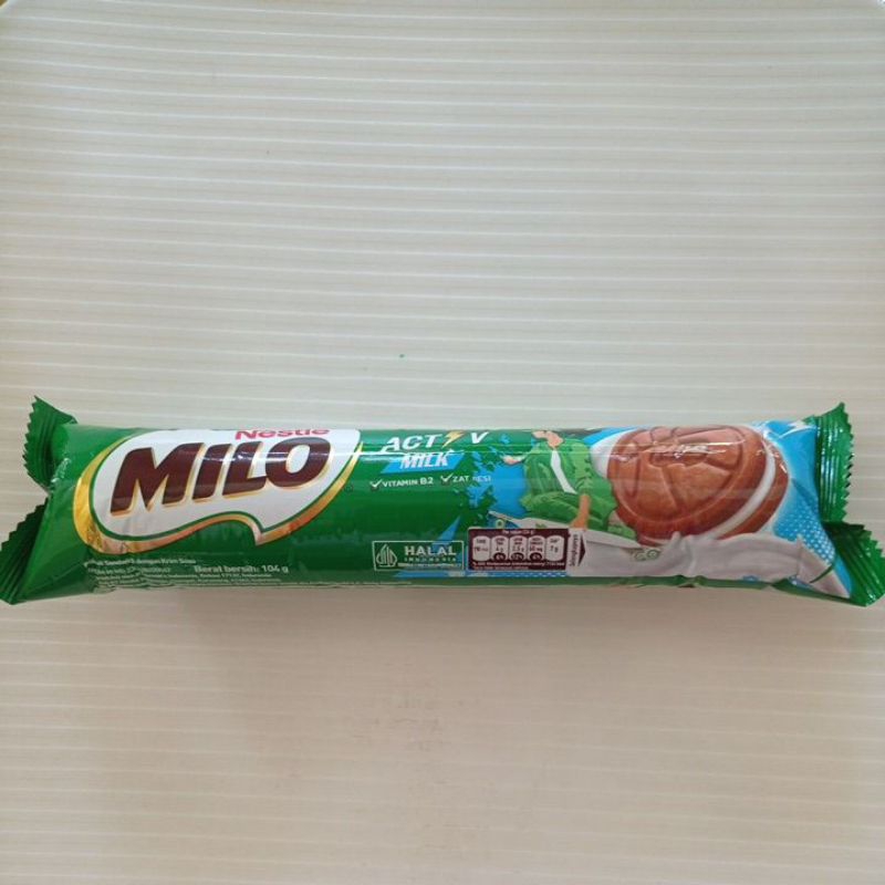 Nestle Milo Activ merupakan biskuit sandwich berisi kebaikan malt, coklat, dan susu sebagai sumber Vitamin B2 & Zat besi
