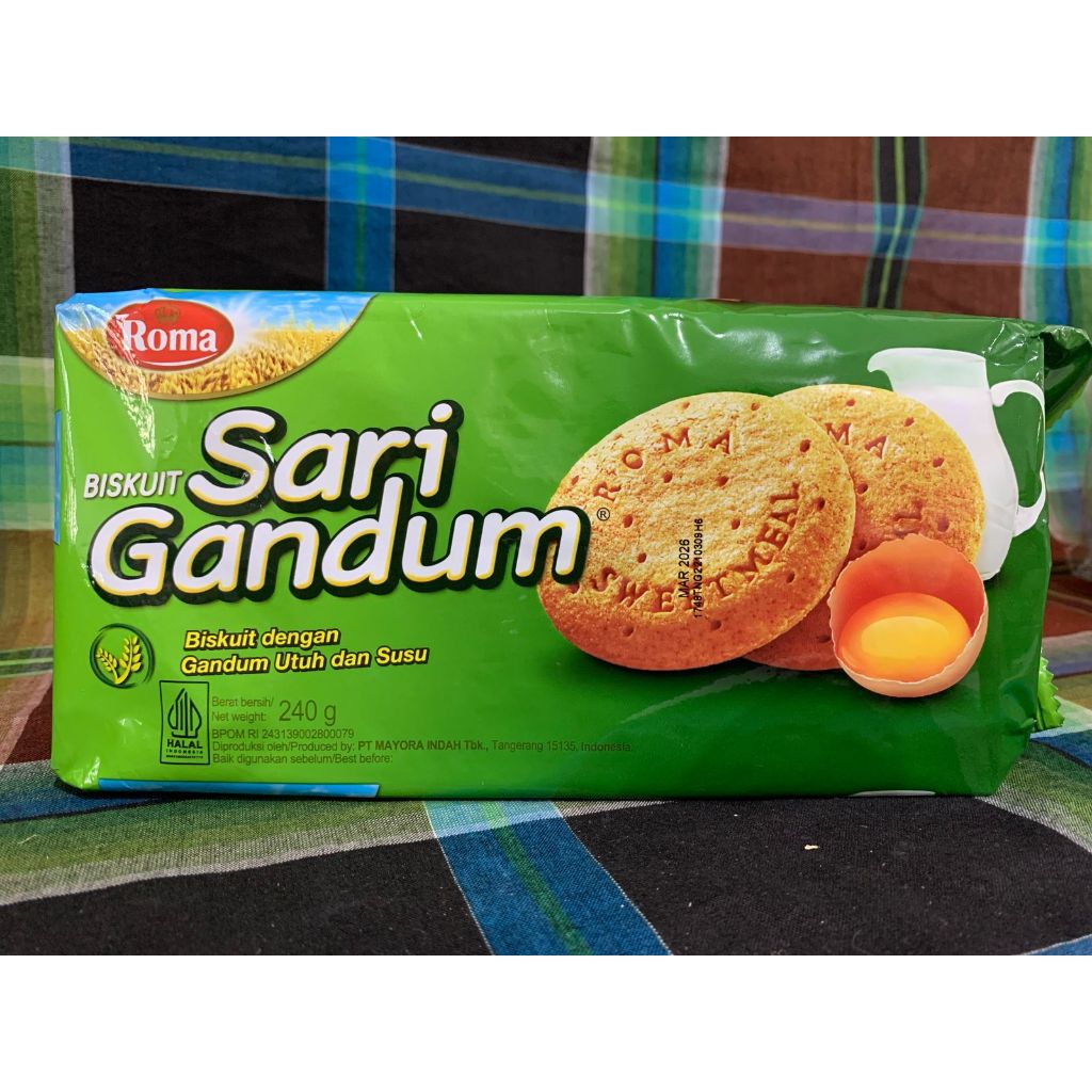 Roma Sari Gandum adalah biskuit yang diproduksi oleh PT. Mayora Indah Tbk. Biskuit ini terbuat dari gandum pilihan dan mengandung susu, menjadikannya pilihan camilan yang lezat dan sehat. Roma Sari Gandum tersedia dalam berbagai varian, termasuk yang original dan sandwich dengan berbagai rasa seperti coklat dan peanut butter.