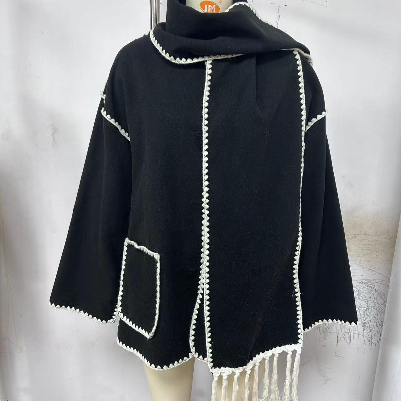 BITCED Женское осенне-зимнее модное шерстяное пальто утолщенное свободное с бахромой на шарфе для женщин XL теплый черный
