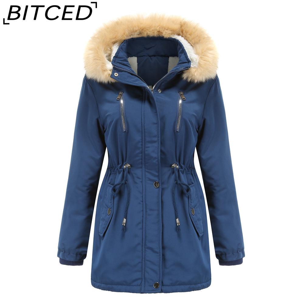 BITCED Женское утолщенное хлопковое пальто из овчины на осень/зиму, хлопковая куртка свободного кроя со съемным капюшоном и флисовой подкладкой XXXXL темно-синий