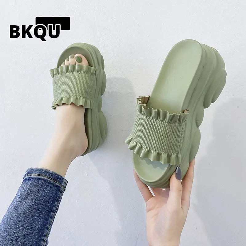 BKQU женские тапочки на высоком каблуке, женские повседневные туфли на танкетке, модные женские пляжные тапочки с открытым носком, увеличиваю...
