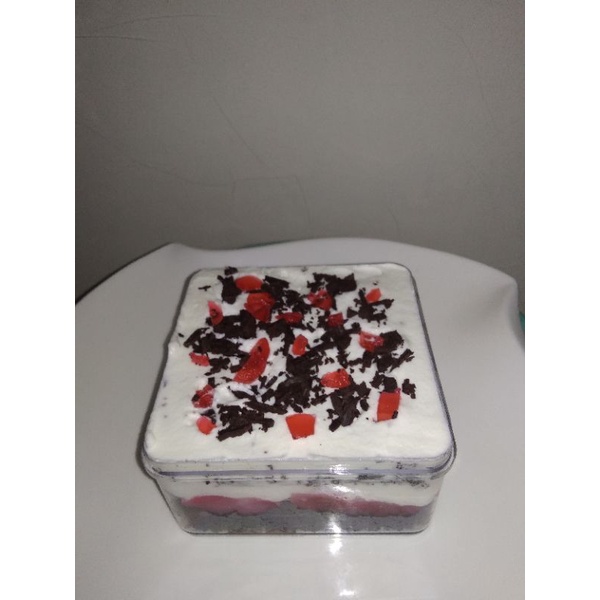 Chocolate cake premium yang lembut dengan ciri khas whipped cream, selai ceri dan topping cokelat potongan SilverQueen. Ukuran 350ml. Fresh made setelah pesanan diterima, karena tanpa bahan pengawet dan HALAL.