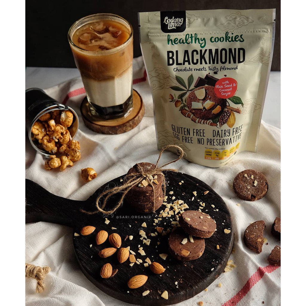 Blackmond Healthy Cookies dari Ladang Lima punya cita rasa yang tidak disangka pada awalnya. Siapa yang sangka cookies gluten free ini enaaknya banget. Paduan almond panggang dan dark chocolate nya.
