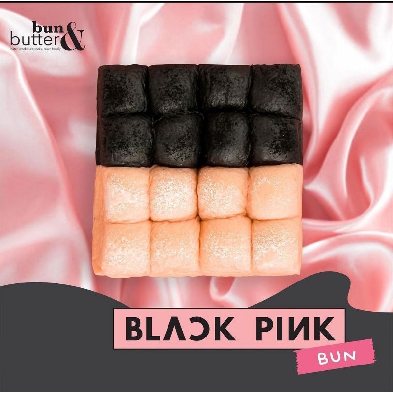 combination of black bun ( coffee crunchy filling ) and pink bun ( milky crunchy filling)