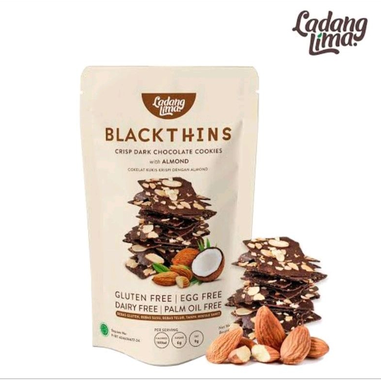 Cookies crispy sehat "Gluten Free" yang terbuat dari tepung singkong Ladang Lima yang berpadu dengan dark chocolate, gula kelapa, remahan kelapa, serta taburan almond panggang menciptakan perpaduan rasa yang manis dan crispy di setiap gigitannya.