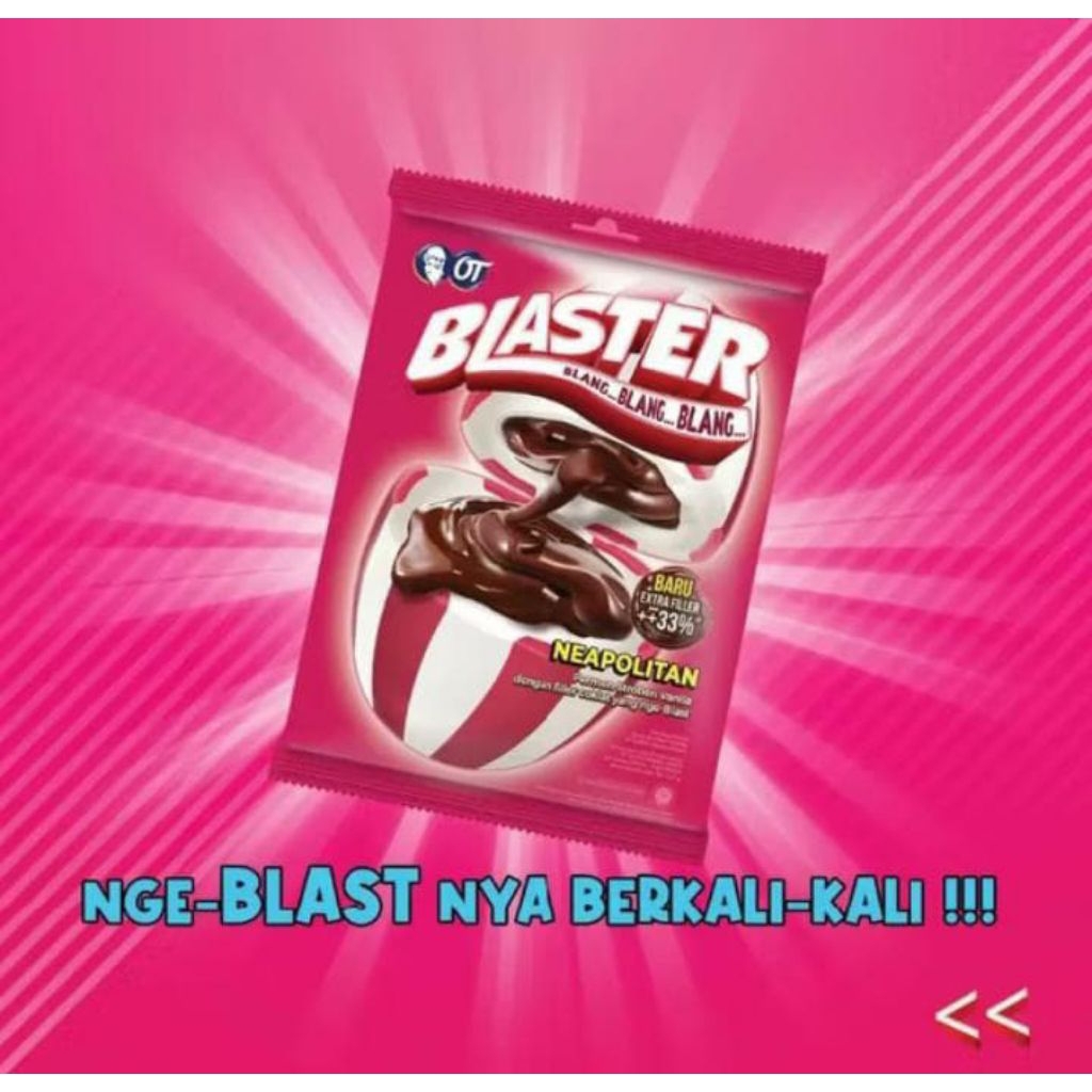 Blaster Permen Neapolitan adalah permen dengan perpaduan strawberry di luar dan ledakan coklat di dalam, memiliki tekstur crunchy dan coklat yang lumer di mulut. Tersedia dalam varian rasa Neapolitan dan Choco Mint.