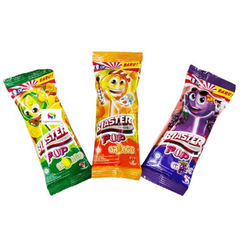 Blaster Pop adalah permen lolipop yang dibuat oleh Orang Tua Group, dikenal dengan kombinasi rasa buah seperti mangga, jeruk, dan anggur, dengan krim di dalamnya. Permen ini populer karena sensasi rasanya yang unik dan menyegarkan. Blaster Pop sering dikemas dalam bentuk renceng atau dus dengan isi bervariasi.