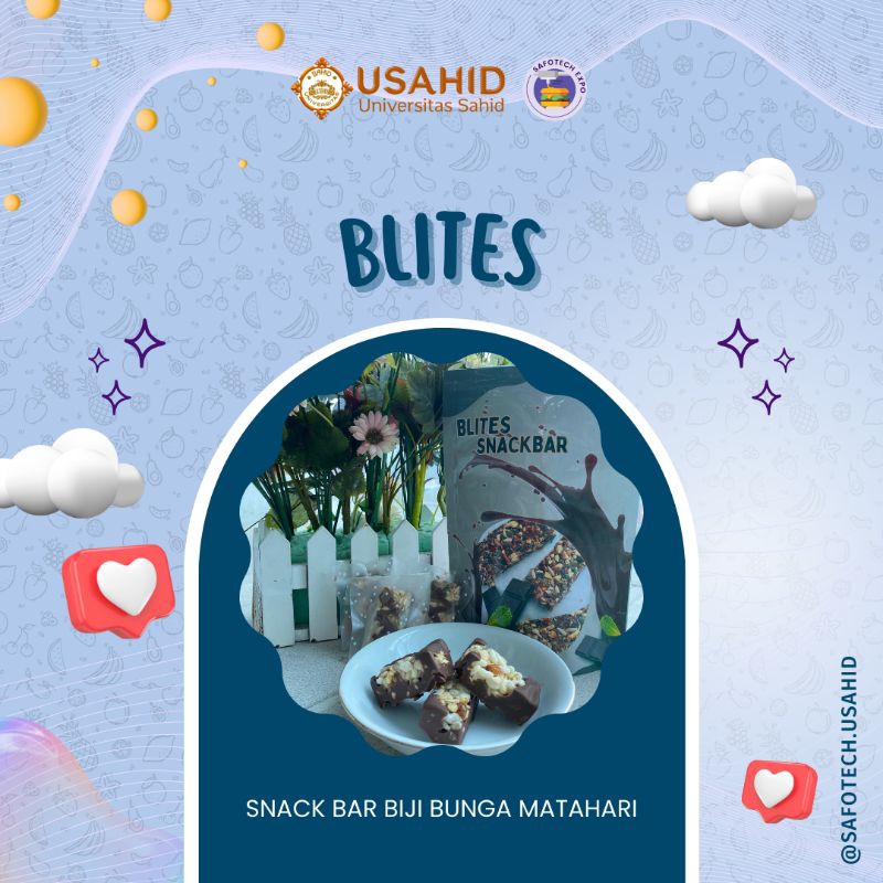 Kini hadir Blites Snack bar merupakan cemilan kekinian,praktis dan pastinya enak yang terbuat dari perpaduan antara biji bunga matahari, rolled oat, rice crispy dan mix grain yang dipadukan menjadi satu blites snack bar.