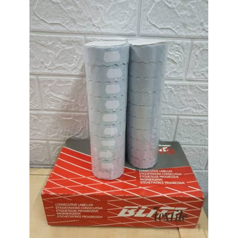 Blitz Sticker Label refill untuk alat cetak label merk Blitz consecutive labeller 2234. Biasanya digunakan di industri tekstil dan garment.