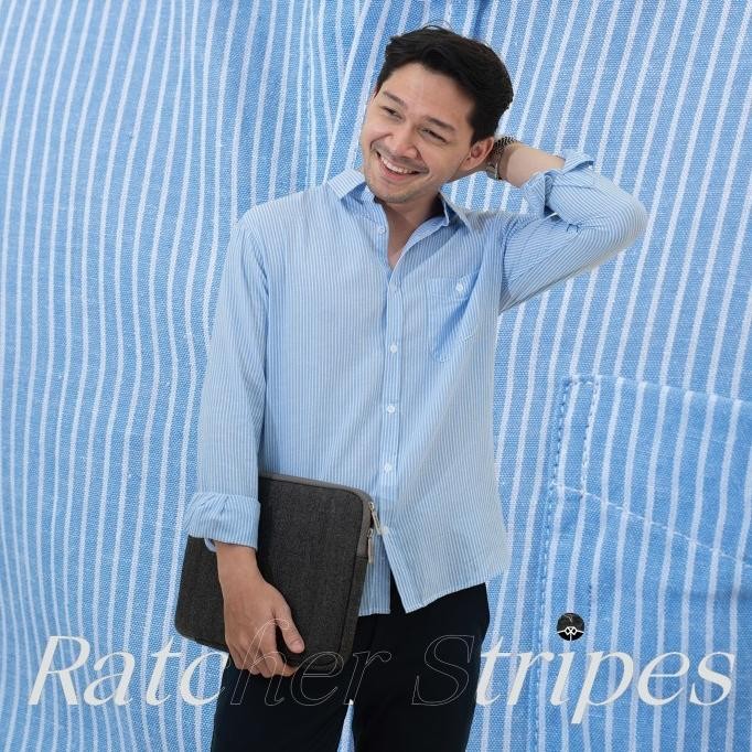 BLUE- KEMEJA GARIS PRIA WOODCUTTER BASIC RATCHER STRIPES - LIGHT BLUE