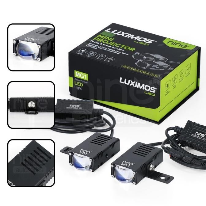 LUXIMOS MG1 LAMPU TEMBAK LASER LED MINI PROJECTOR + DEVIL EYES 60 WATT BLUE LENS GRILL MOBIL