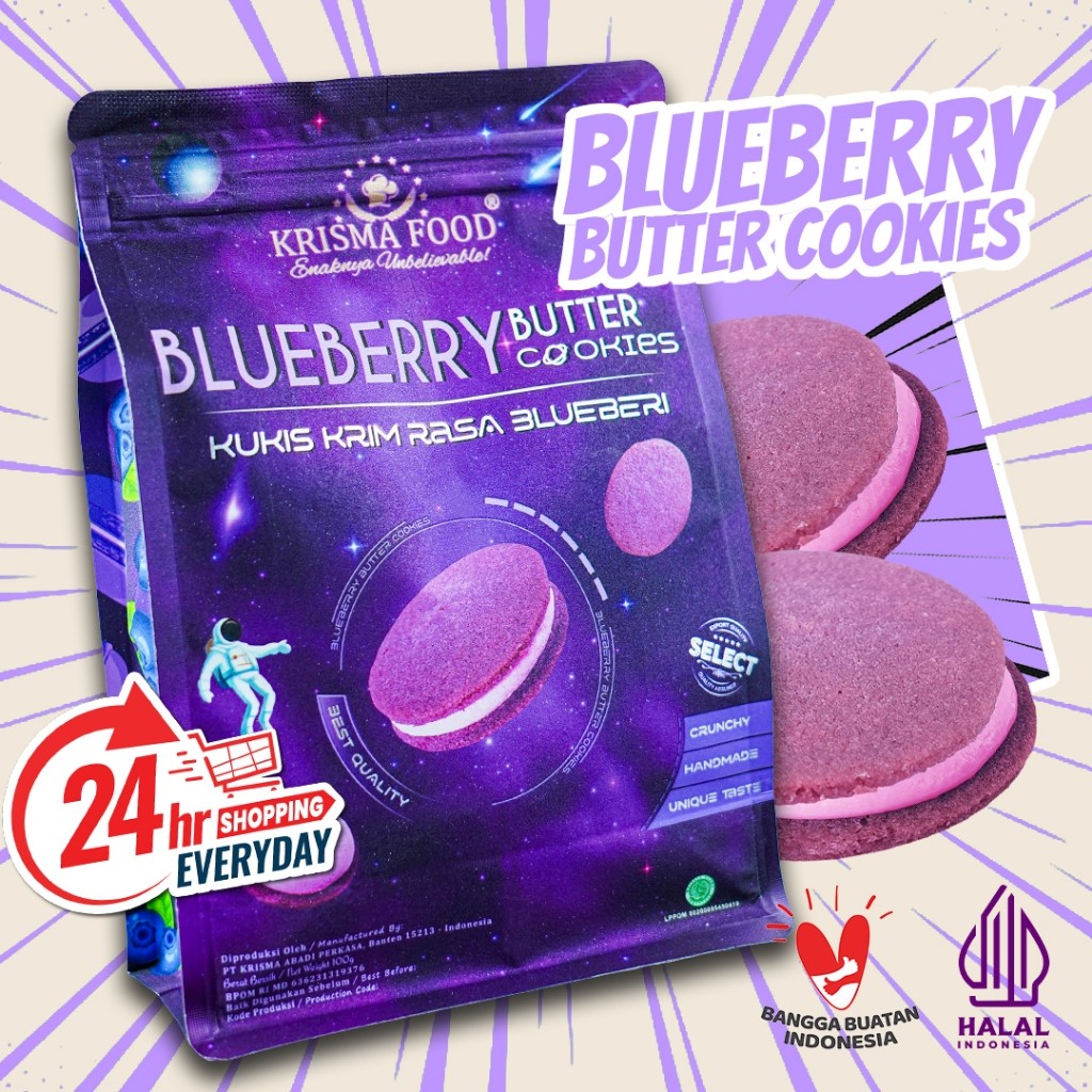 Blueberry Butter Cookies, biskuit dengan isi krim rasa Blueberry.