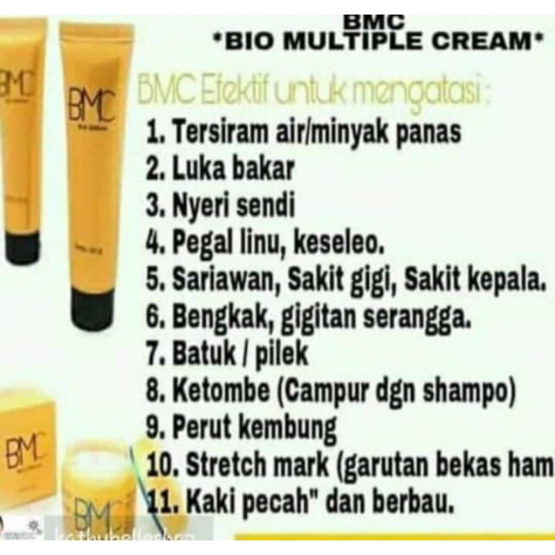 BMC 30 ini wajib sebagai p3k dirumah anda. Bisa di oleskan pada bagian yang terluka, sakit gigi, pusing, mual, flu, luka bakar, nyeri sendi, perut kembung.dll
