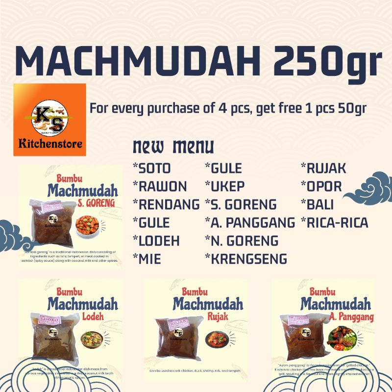 Produk di atas adalah bumbu machmudah dengan berat 250 gram. Sangat cocok untuk digunakan memasak dalam jumlah besar atau banyak.