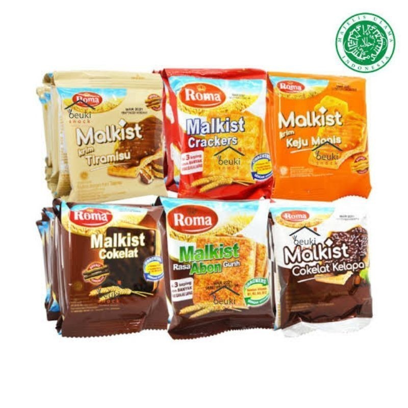 roma malkist renteng isi 10pcs dalam 1 pak nya, coklat, abon dan crackers