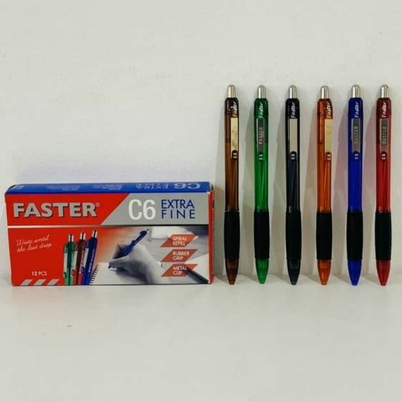 PULPEN FASTER C6 HITAM, harga per pack, 1 pack isi 12pcs.