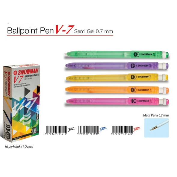 Pulpen Snowman V7 merupakan pulpen cetek snowman yang berukuran 0.7mm.