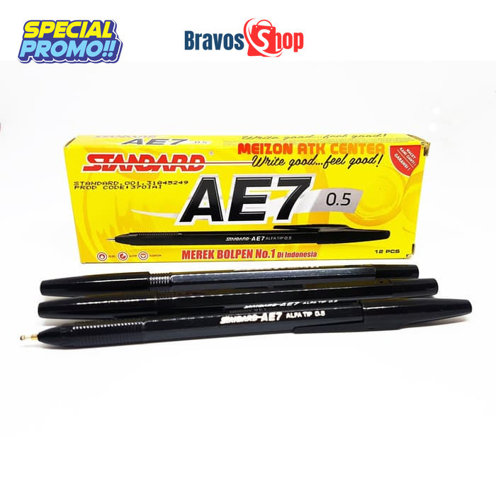 Harga dalam 1 lusin Merek Standard Tipe AE7 Ukuran 0.5mm Isi 12pcs. Warna Hitam Biru dan Merah.
