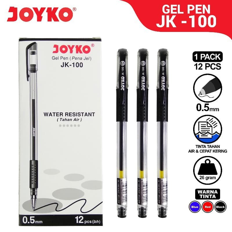 Pulpen JK-100 adalah pulpen gel yang tahan air dan memberikan sensasi menulis yang halus dan lembut.