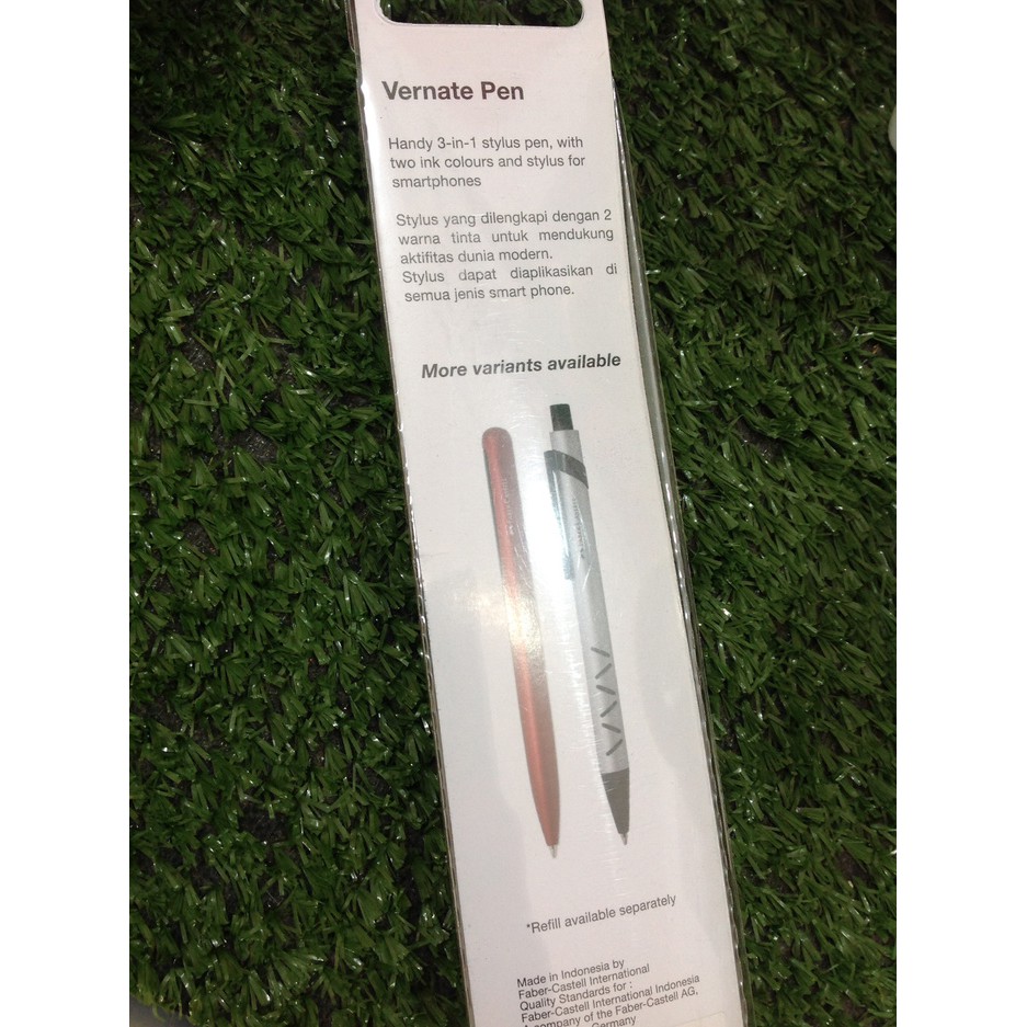 Faber castell Ballpoint stylus pen Vernate 0,7mm adalah 3 in 1 dimana didalam satu barell pen terdapatballpoint dengan 2 warna tinta : hitam & biru serta bagian ujung terdapat stylus pen yang lembut untuk digunakan pada smartphone/tablet.