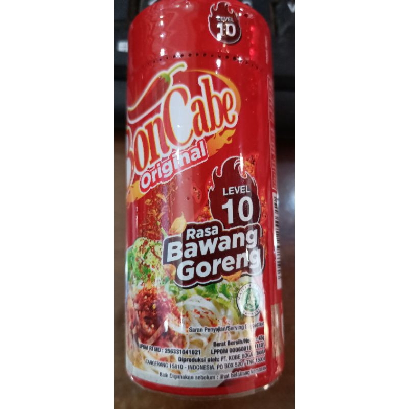 BonCabe botol level 10 adalah bumbu pedas kering yang terbuat dari 100% cabai asli, termasuk cabai rawit, dan rempah-rempah alami. BonCabe level 10 memiliki rasa pedas yang diimbangi dengan rasa gurih dari rempah-rempahnya.