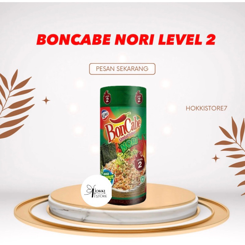 BonCabe level 2 Rasa Nori! Sensasi Gurih bikin Nagih! Produk terbaru dari BonCabe ini dibuat khusus untuk kamu yang suka sensasi gurih bikin nagih. Perpaduan antara cabe pilihan berkualitas dan nori super crunchy jadi pilihan yang cocok untuk manjain lidahmu.