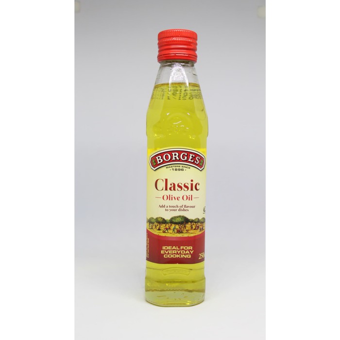 Borges Pure Olive Oil 500ml merupakan minyak zaitun dengan komposisi minyak : 85% refined oil ( minyak telah melalui proses kimia ) + 15% olive oil. Aroma lebih lembut dari EVOO. Baik untuk : memanggang daging, aplikasi tumis, menggoreng, glazing product. Warna kuning keemasan. Rasa dan aroma lebih lembut. Dikemas dalam botol plastik. Import dari Spain.