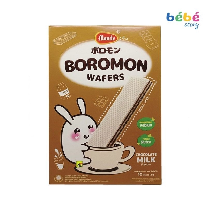 Ini adalah wafer halus dari Monde, lebih kepada snack untuk balita. Wafer renyah dgn ekstra kandungan susu yg disukai oleh anak2. Boromon Wafer ini, dibuat esklusif utk cemilan berkualitas bagi anak anda mulai 1 tahun keatas. Dgn ke-esklusif-an ini, Monde menciptakan Boromon wafer dgn penuh cinta buat anak anda bahkan juga baik utk segala usia. Dibuat dgn bahan khusus yg bebas gluten, dan mengandung kalsium serta berbagai vitamin yg baik untuk tubuh, dgn kandungan ekstra susu dalam krim2 lembut berbagai rasa. Dikemas esklusif dalam 1 kotak berisi 6 pck kecil bernetto @20 gr. Produksi PT. Monde Mahkota Biskuit - Jakarta. Beratribut BPOM RI dan Halal MUI. Silahkan di order, stok terbatas!