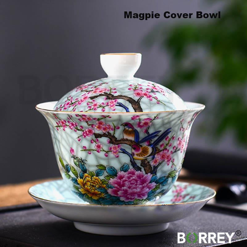 BORREY Китайский керамический чайный сервиз «Сорока Гайвань» Чай кунг-фу Белый фарфор Гай Ван Контур в блюдце Чайная посуда Церемониальное блюдо Чайная чашка gaiwan 180ML
